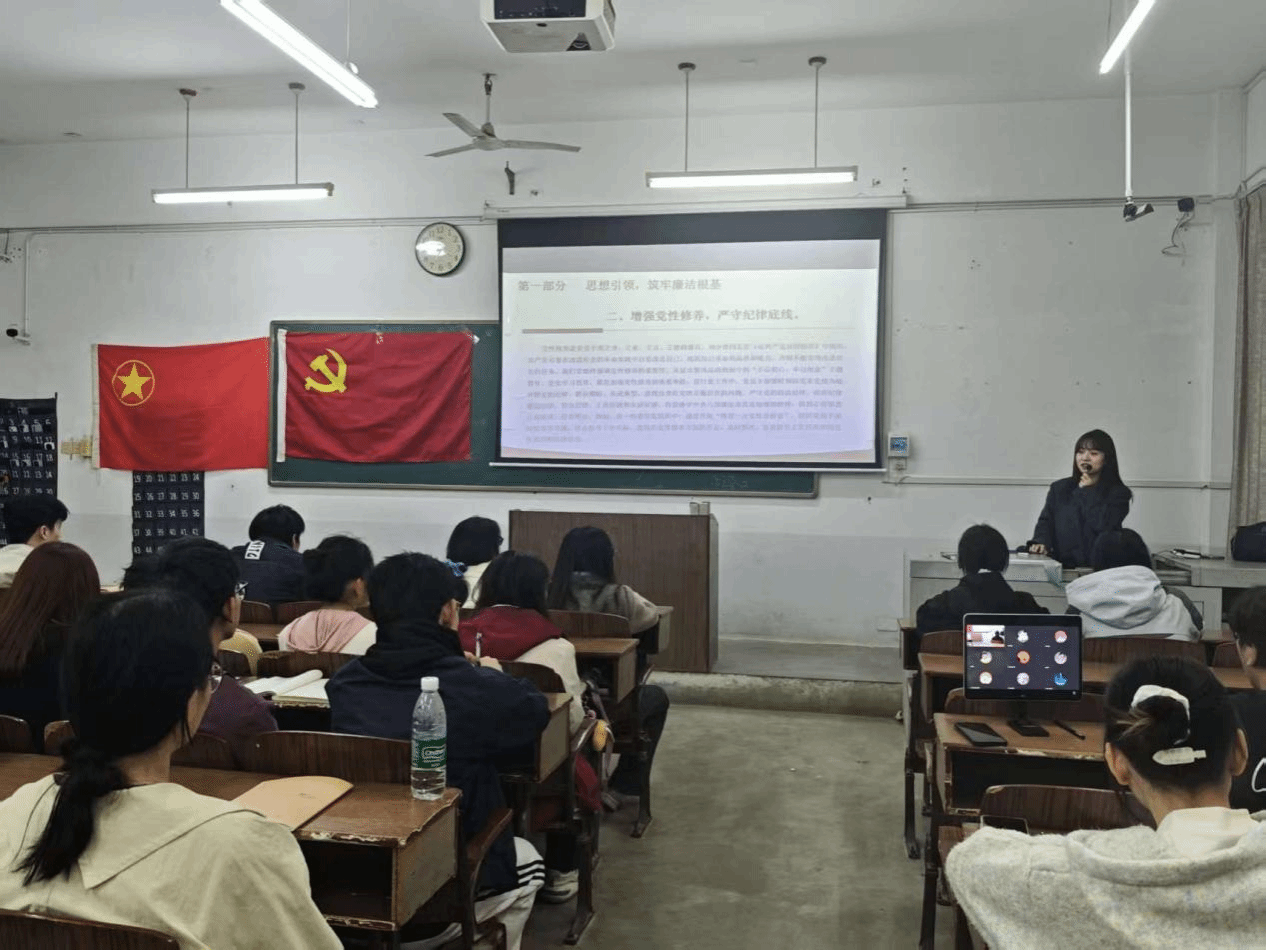 (通讯员 龚玲莉)2025年11月10日18点30分,土木工程与建筑学院第三十四期党校第四次党课在N4-409教室如期举行。本次党课以“强化廉洁教育,筑牢拒腐防变思想防线”为主题,由刘雨荷老师主讲。