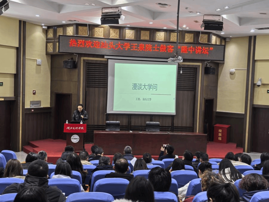 (土建学院通讯员王婧)12月15日,汕头大学王泉院士应邀做客隆中讲坛,为土木工程与建筑学院师生作主题“漫谈大学问”的学术讲座。