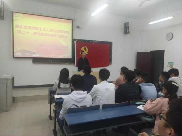 (通讯员 王海锦)2019年4月8日晚上,土木工程与建筑学院在8栋A区104教室开展了第二十一期党校开班典礼暨第一讲,出席本次开班典礼的有院党委副书记弋兵和学工办主任冷翔,由马克思主义学院教师马国谨授课。